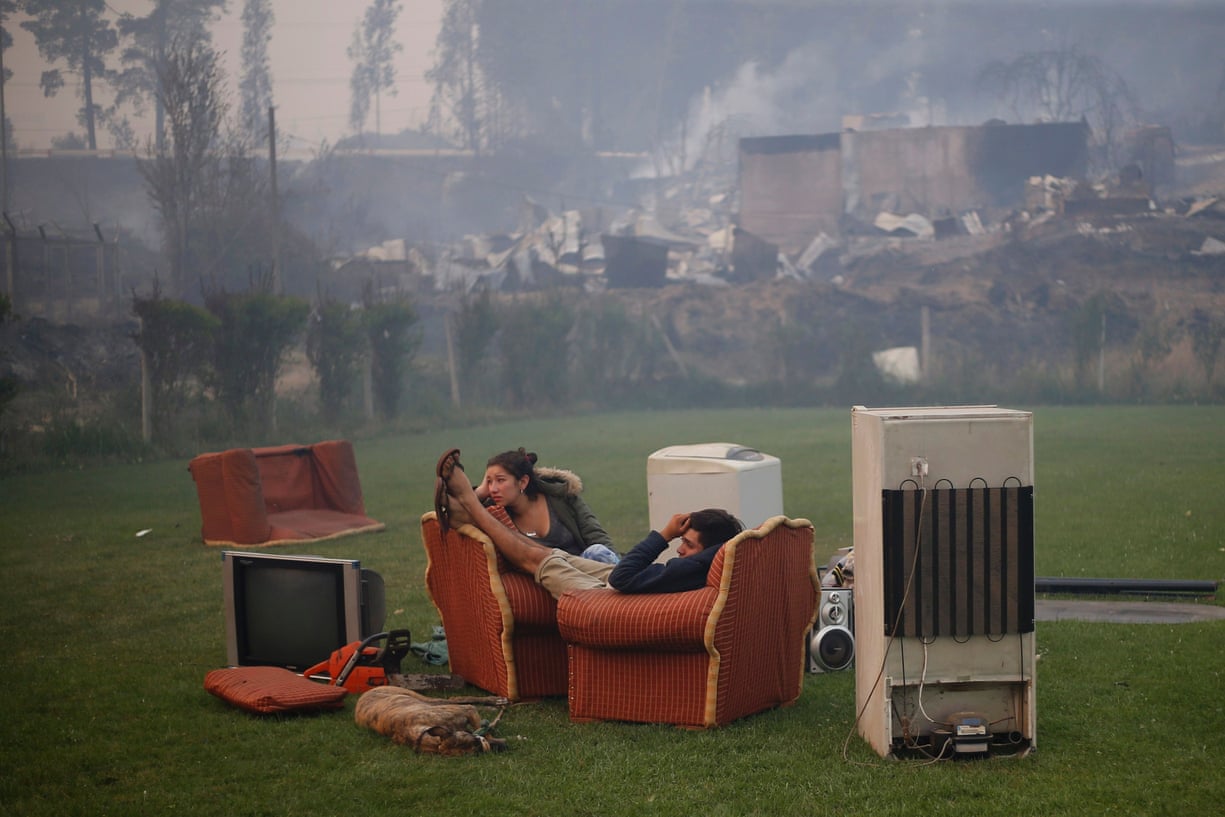 27 - Le feu a continué à s'étendre vers le sud (arrivant à l'Araucanie). Il y a 300.000 ha maintenant brûlées, sur un front de 1.400 km. 40.000 ha en appartiennent à des grandes entreprises forestières, qui mobilisent pour se protéger 20 hélicoptères, 15 petits avions et plus de 2.000 travailleurs, avec un coût de 47 millions de dollars. La chaleur des incendies a fait monter la température à 43,9°C dans certaines communes.